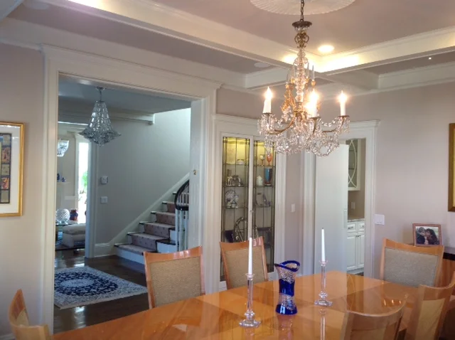 The living room, dining room and hall involved state of the art lighting, coupled with vintage fixtures.