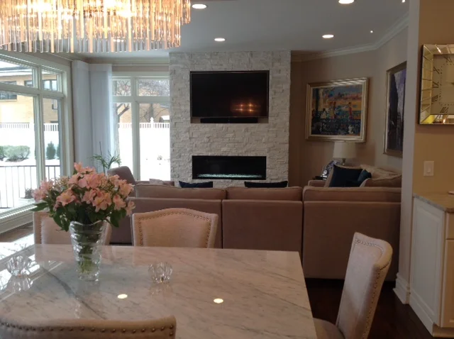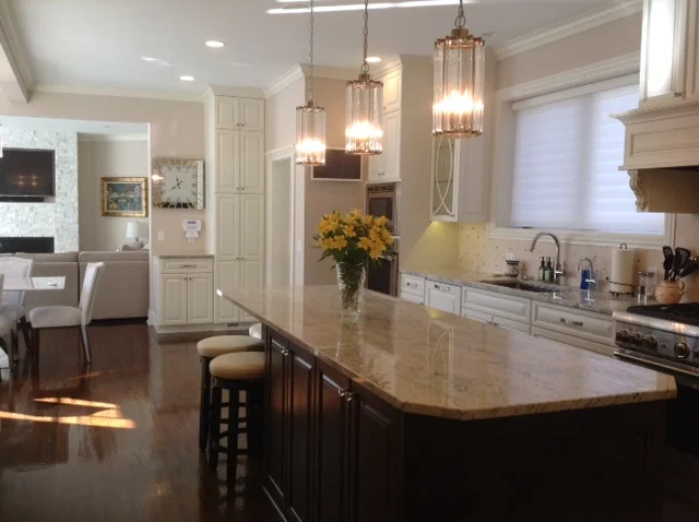 After complete demolition of the kitchen and family room, I utilized state of the art lighting, sound system, and large windows that inviting, warm, and pleasurable.